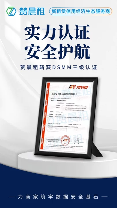 赞晨租斩获DSMM三级认证,为企业商家筑牢数据安全坚固基石